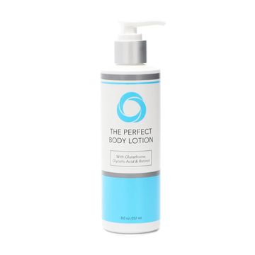 The perfect complement to The Perfect Body Wash. This exfoliating lotion features the Master Antioxidant GLUTATHIONE. It contains 15% Glycolic Acid and retinol which increases cellular turnover. It is packed with botanicals that lighten and brighten the skin for a healthy glow.